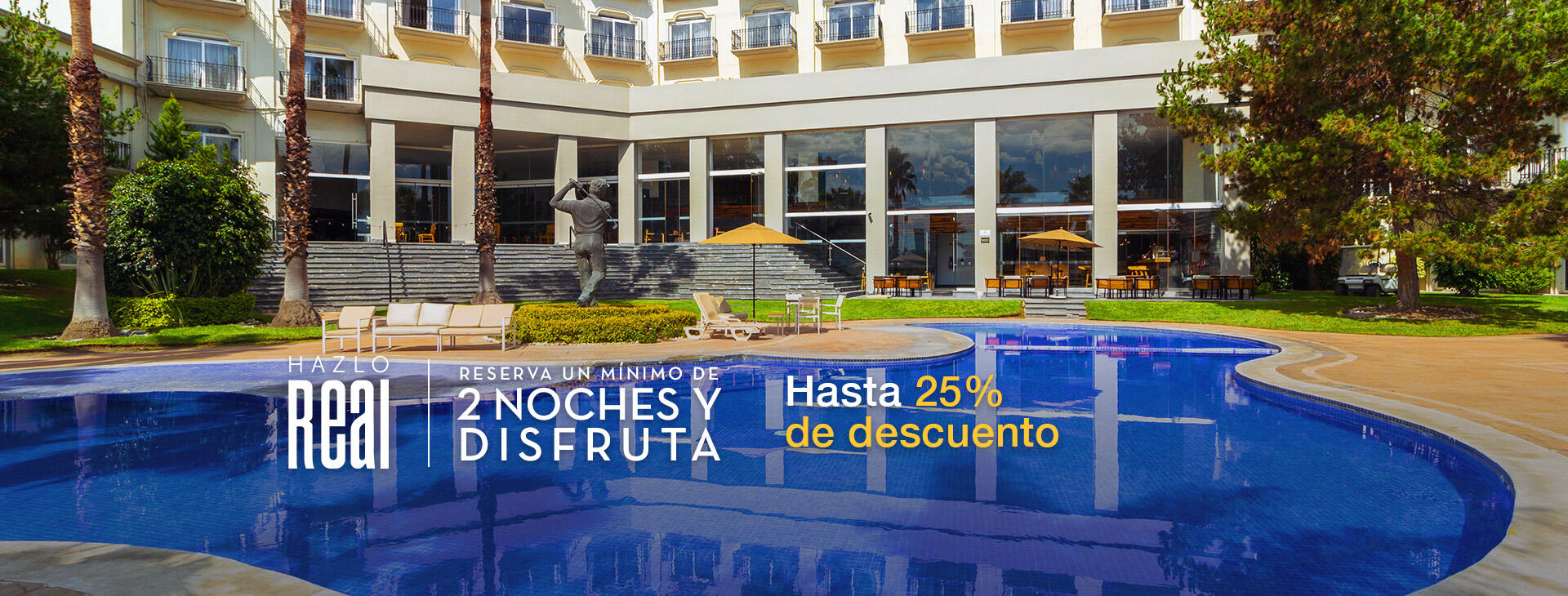 Términos y Condiciones – “Más Noches – Paga Menos”Promoción válida para reservaciones realizadas y viajes efectuados entre el 16 de enero de 2026 y el 15 de enero de 2027. Promoción válida para Real Inn Mexicali para reservaciones realizadas y viajes efectuados entre el 16 de enero de 2026 y el 30 de marzo de 2026. Promoción válida para Real Inn Nuevo Laredo para reservaciones realizadas y viajes efectuados entre el 16 de enero de 2026 y el 29 de junio de 2026. Promoción válida para Real Inn San Luis Potosí para reservaciones realizadas y viajes efectuados entre el 16 de enero de 2026 y el 29 de julio de 2026. Promoción válida para Real Inn Torréon para reservaciones realizadas y viajes efectuados entre el 16 de enero de 2026 y el 12 de julio de 2026.Para los hoteles Quinta Real aplica hasta un 25% (veinticinco por ciento) de descuento: